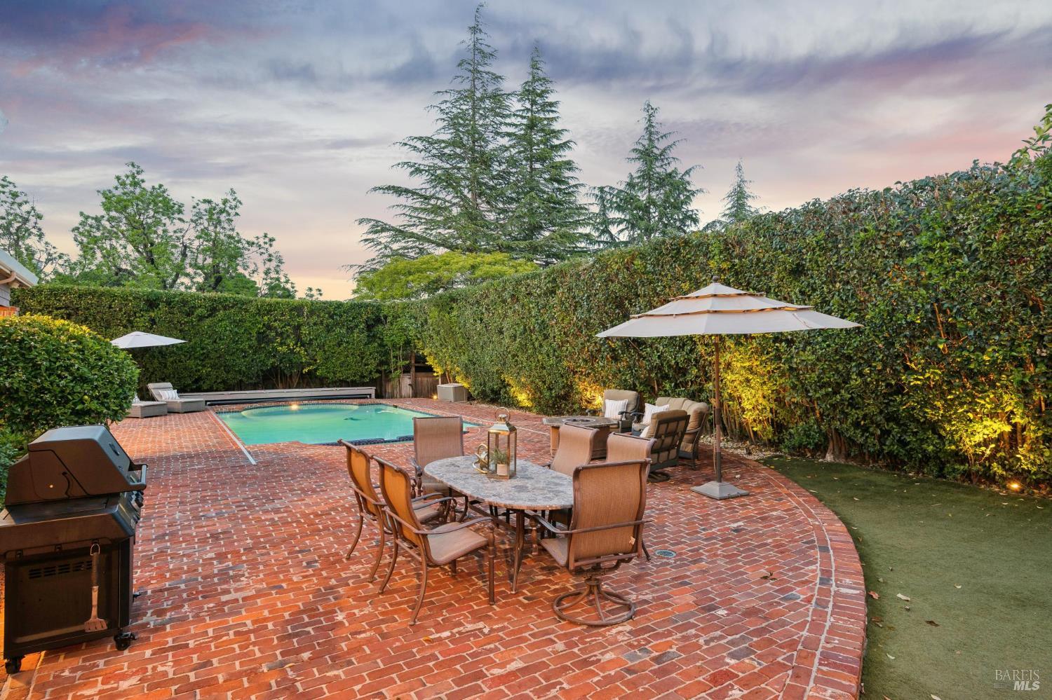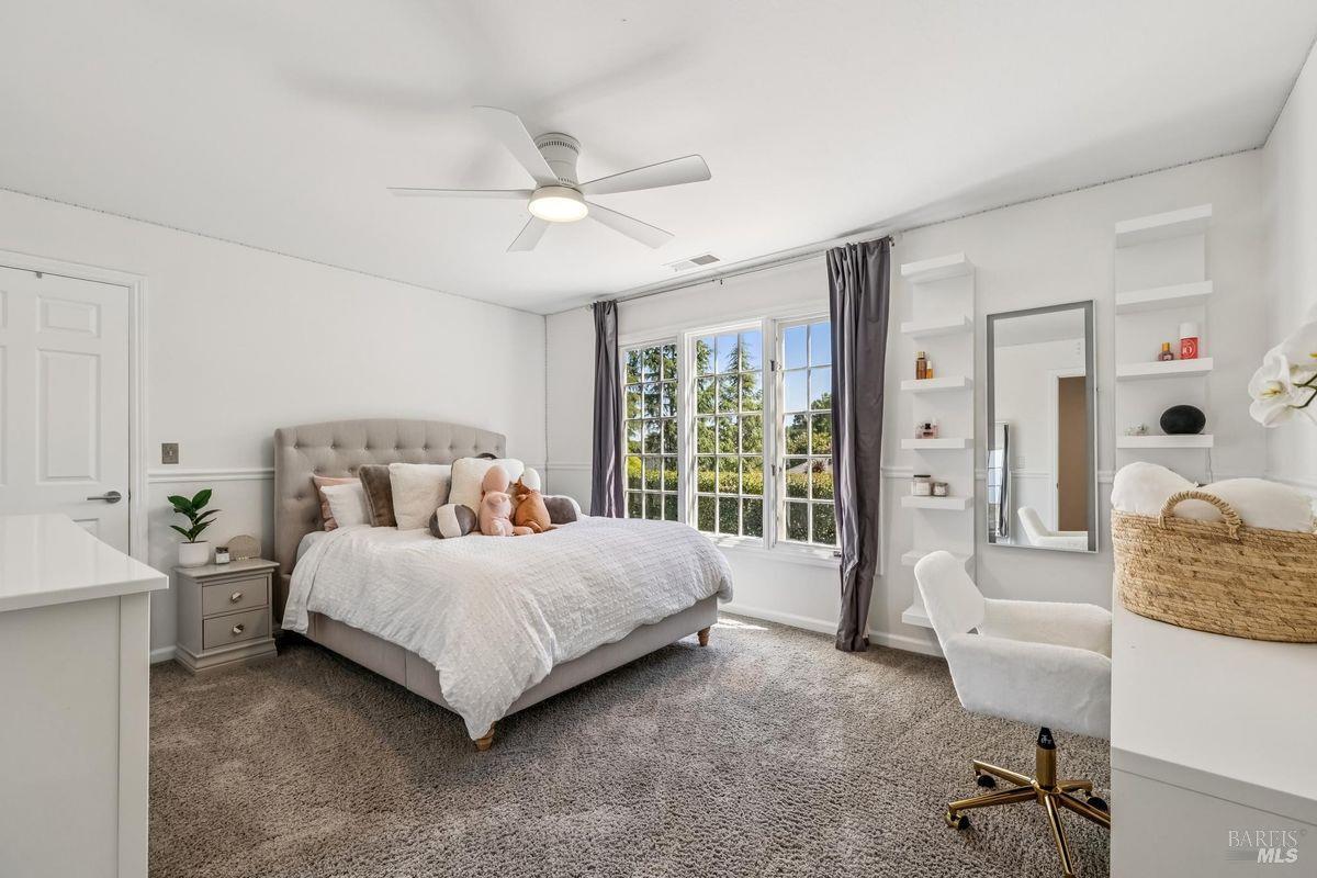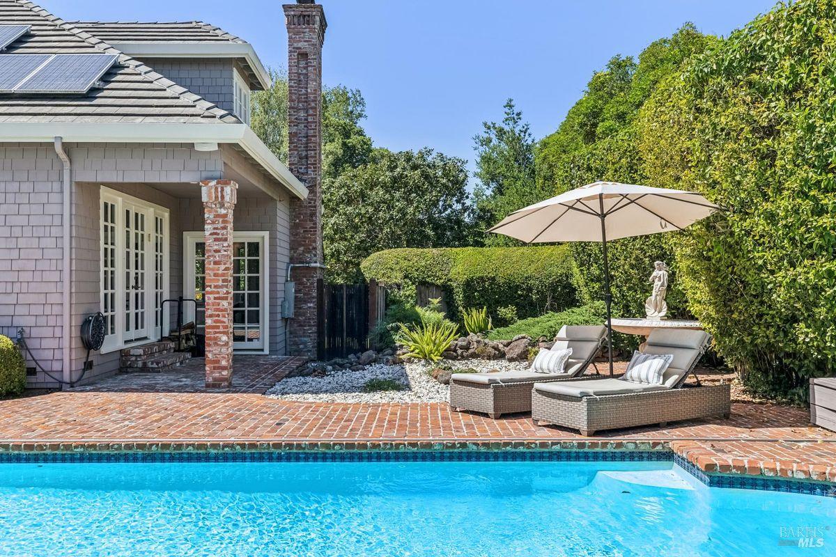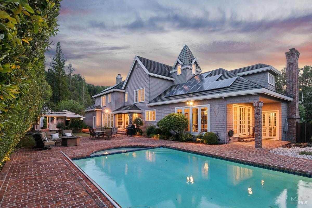Discover an extraordinary estate in the coveted Wild Horse Valley neighborhood of west Novato. Tucked away on a serene gated property in Pleasant Valley, this home offers an unparalleled lifestyle with its approximate 5,000 sq. ft. main residence, resort-style backyard, and a versatile two-story ADU. The main residence features four bedrooms and 3.5 baths, including a luxurious primary suite with dual spa-like bathrooms, two oversized walk-in closets, a cozy fireplace, and a sitting area. Entertain with ease in the island-centric kitchen, formal dining room, and sunlit living spaces that flow seamlessly into the backyard. Additional highlights include a wood-paneled office, a large home theater, and a versatile downstairs ensuite bedroom. Step outside to your private oasis, surrounded by a 15-foot privacy hedge. Lounge by the sparkling pool, relax under the gazebo, or enjoy the peaceful fountain. Multiple garden and patio areas make this the perfect retreat or hosting space. The ADU offers endless flexibility with a bedroom, a second sleeping area, a full kitchen, and living spacesideal for guests, extended family, or rental income. A curved staircase leads to an unfinished room above that provides potential for further customization. Practical amenities include a four-car garage, ample parking, and a Generac backup generator. Plus, the location is unbeatableclose to top-rated schools, Marin County's best hiking trails and west Marin jaunts. This is more than just a home; it's a rare opportunity to own a stunning property that truly stands out in one of north Marin's most sought after neighborhoods. Don't miss your chance to experience all it has to offer!