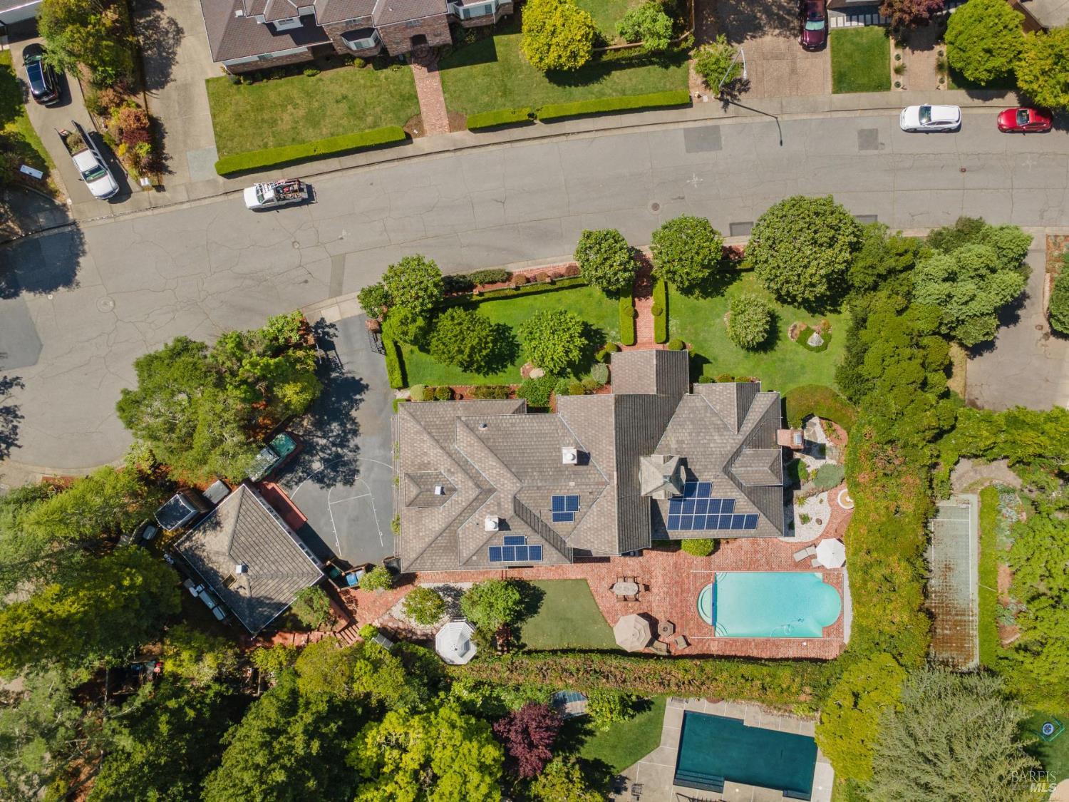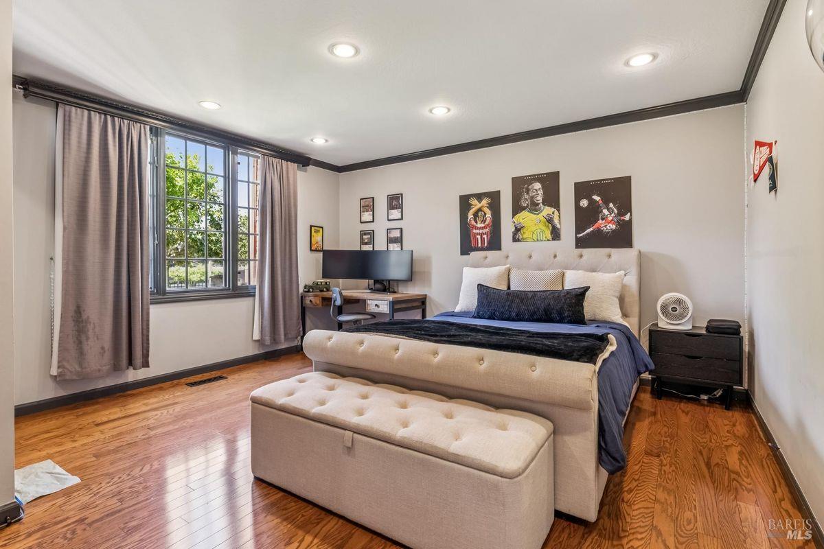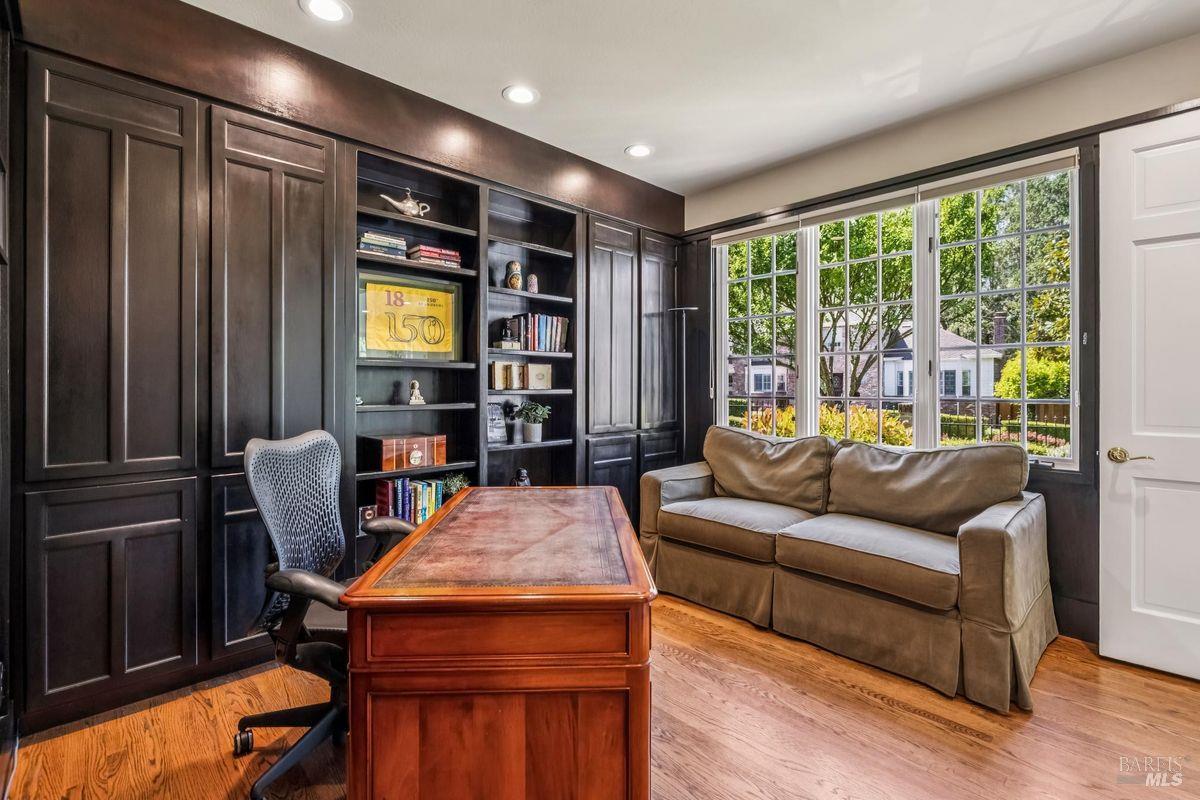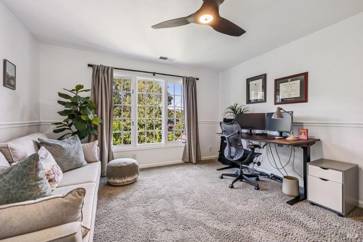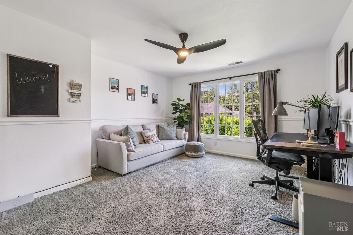 Discover an extraordinary estate in the coveted Wild Horse Valley neighborhood of west Novato. Tucked away on a serene gated property in Pleasant Valley, this home offers an unparalleled lifestyle with its approximate 5,000 sq. ft. main residence, resort-style backyard, and a versatile two-story ADU. The main residence features four bedrooms and 3.5 baths, including a luxurious primary suite with dual spa-like bathrooms, two oversized walk-in closets, a cozy fireplace, and a sitting area. Entertain with ease in the island-centric kitchen, formal dining room, and sunlit living spaces that flow seamlessly into the backyard. Additional highlights include a wood-paneled office, a large home theater, and a versatile downstairs ensuite bedroom. Step outside to your private oasis, surrounded by a 15-foot privacy hedge. Lounge by the sparkling pool, relax under the gazebo, or enjoy the peaceful fountain. Multiple garden and patio areas make this the perfect retreat or hosting space. The ADU offers endless flexibility with a bedroom, a second sleeping area, a full kitchen, and living spacesideal for guests, extended family, or rental income. A curved staircase leads to an unfinished room above that provides potential for further customization. Practical amenities include a four-car garage, ample parking, and a Generac backup generator. Plus, the location is unbeatableclose to top-rated schools, Marin County's best hiking trails and west Marin jaunts. This is more than just a home; it's a rare opportunity to own a stunning property that truly stands out in one of north Marin's most sought after neighborhoods. Don't miss your chance to experience all it has to offer!