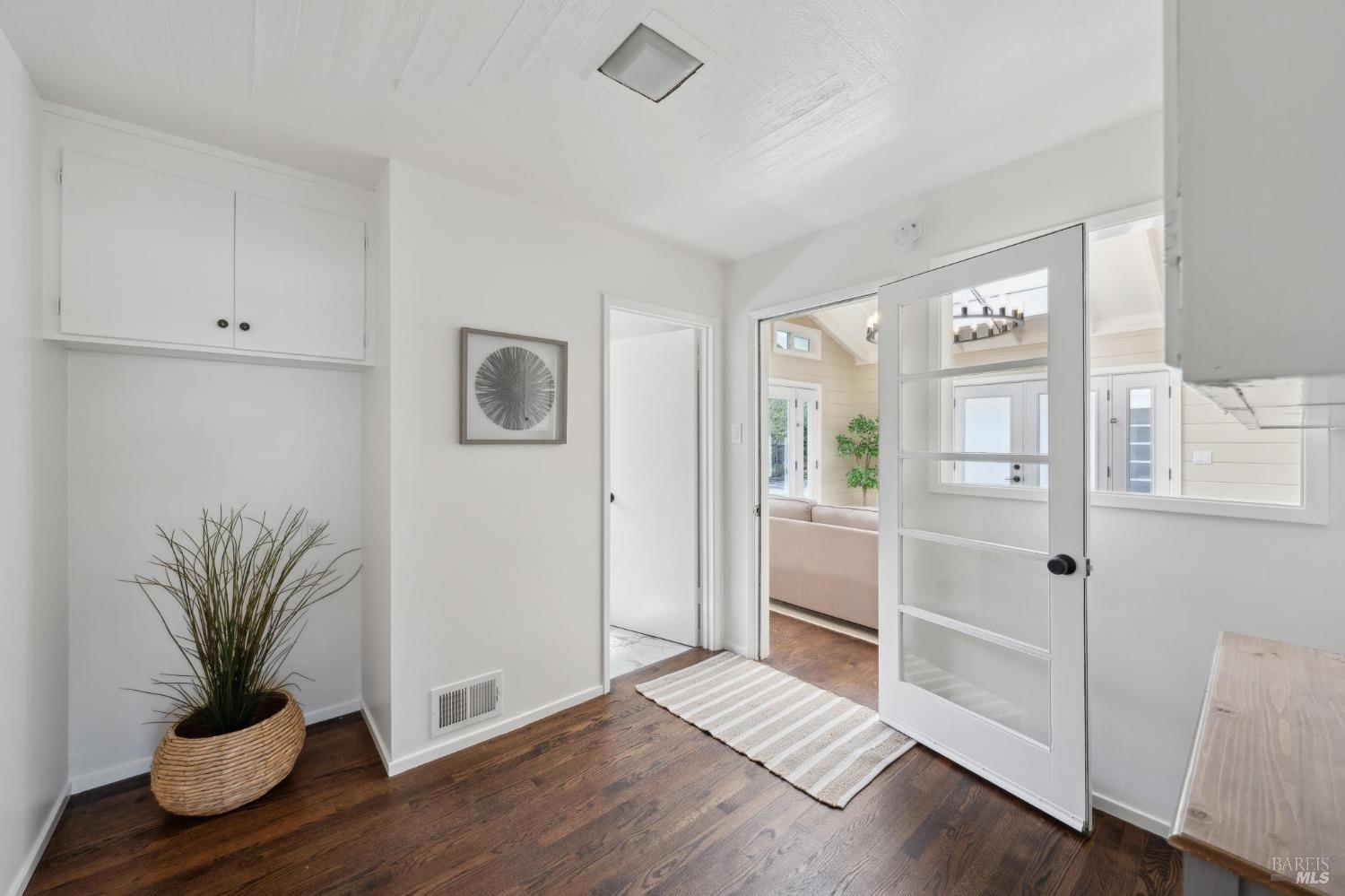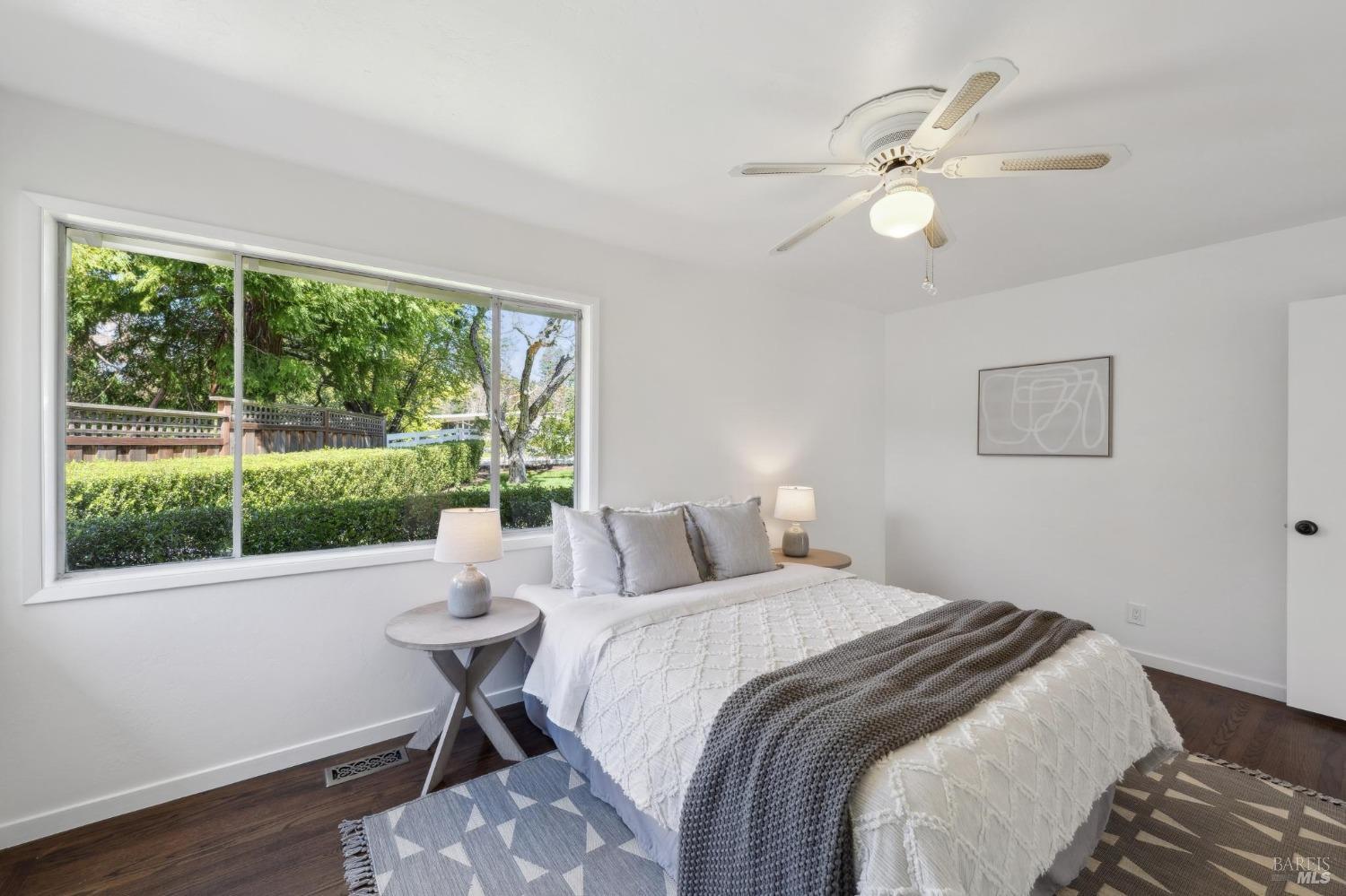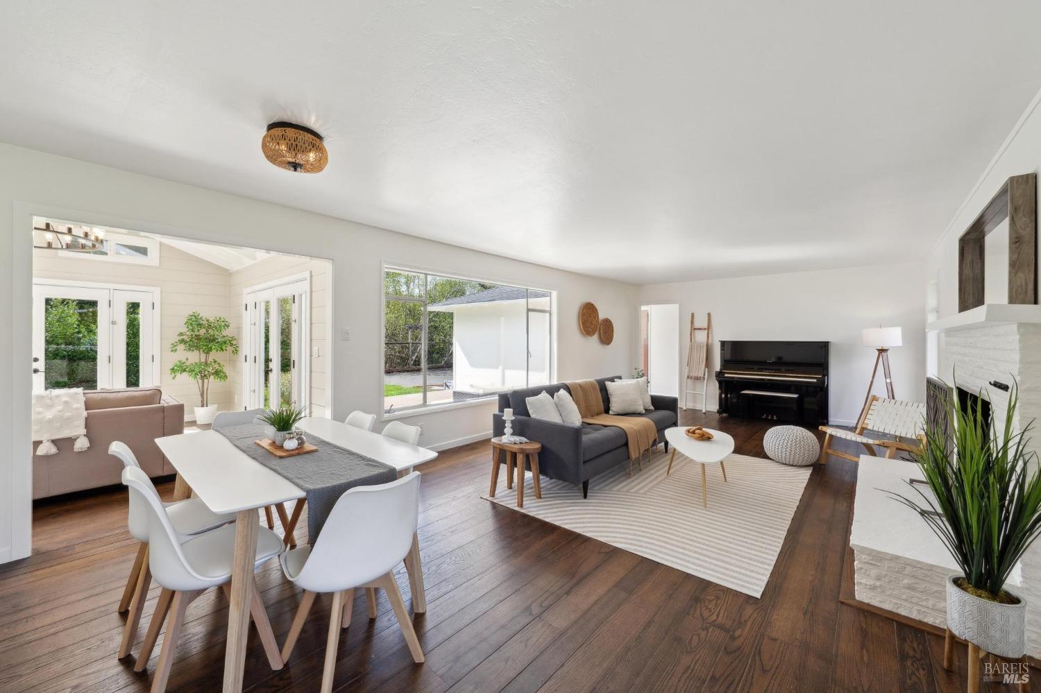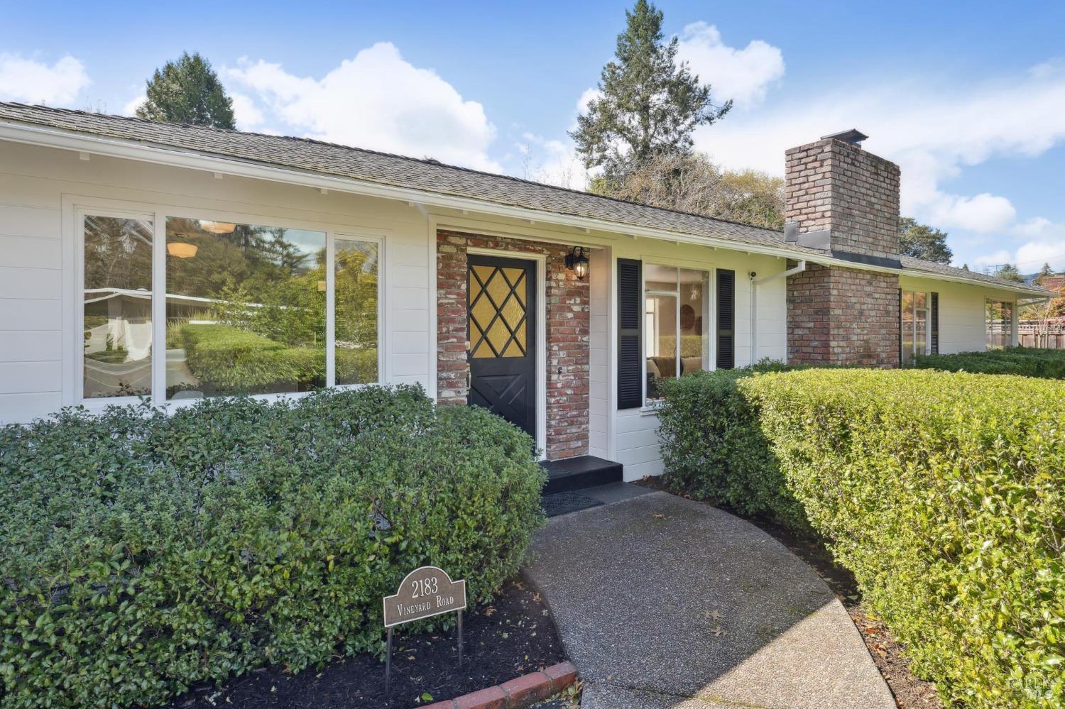 2183 Vineyard Road in the Pleasant Valley school district. This single level charmer offers 1600+ sq ft, a huge lot w/incredible lawn areas in front and back, indoor/outdoor living, privacy and a She-shed out back. With two bedrooms/two baths and two additional areas for office/bedroom capability, this house offers more than you might think! The sun-drenched living spaces include a formal living and dining room, as well as a great room w/soaring ceiling leading to a spectacular back yard. Hardwood floors, 1955 construction/character and all of it situated on one of the most desirable streets in west Novato.