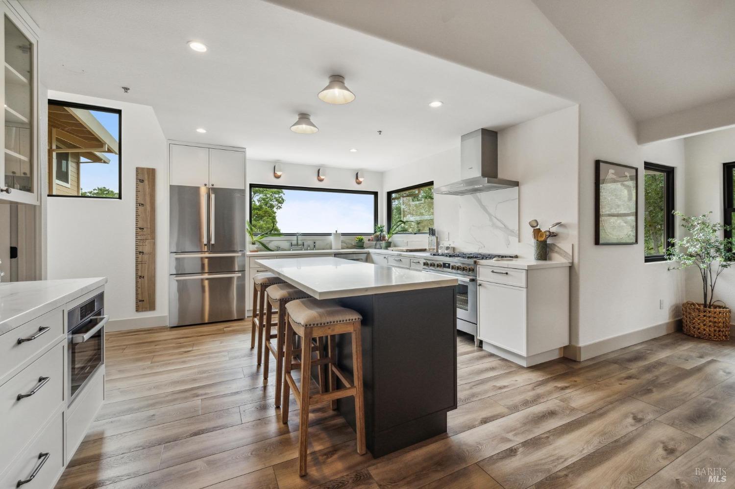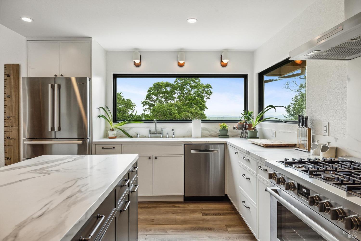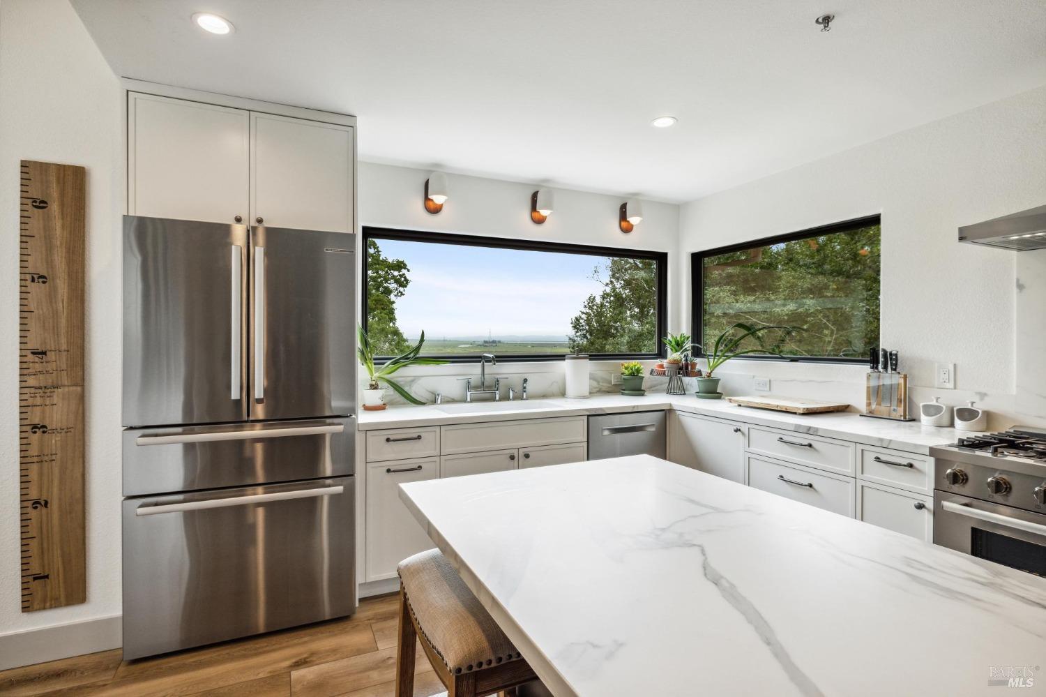 Huge price reduction here! DO NOT miss this complete remodel! No expense spared and it shows. 3607 sq ft of space on almost 2 acres with views of Sonoma & the the Petaluma River. Listed as a three bedroom with three- and one-half baths, there is a sizable fourth room on the main level used currently as an office. Make it your fourth bedroom, or work away! New everything in this designer showcase home. Large chef's kitchen with large communal island, incredibly well-thought-out walk-in pantry, all of it with views & finishes to die for. Enjoy incredible gathering spaces including a dining area, formal living room, two family rooms, two large hearth gas fireplaces & soaring ceilings helping creating a sense of even more space. Each bedroom is ensuite, separate walk-in laundry room, wonderous storage, three car garage & new everything in this turn key north east Novato stunner. Outside find picture frame views, separate parking area, garden beds & room for more development. Don't miss 4 Guisela Ct!