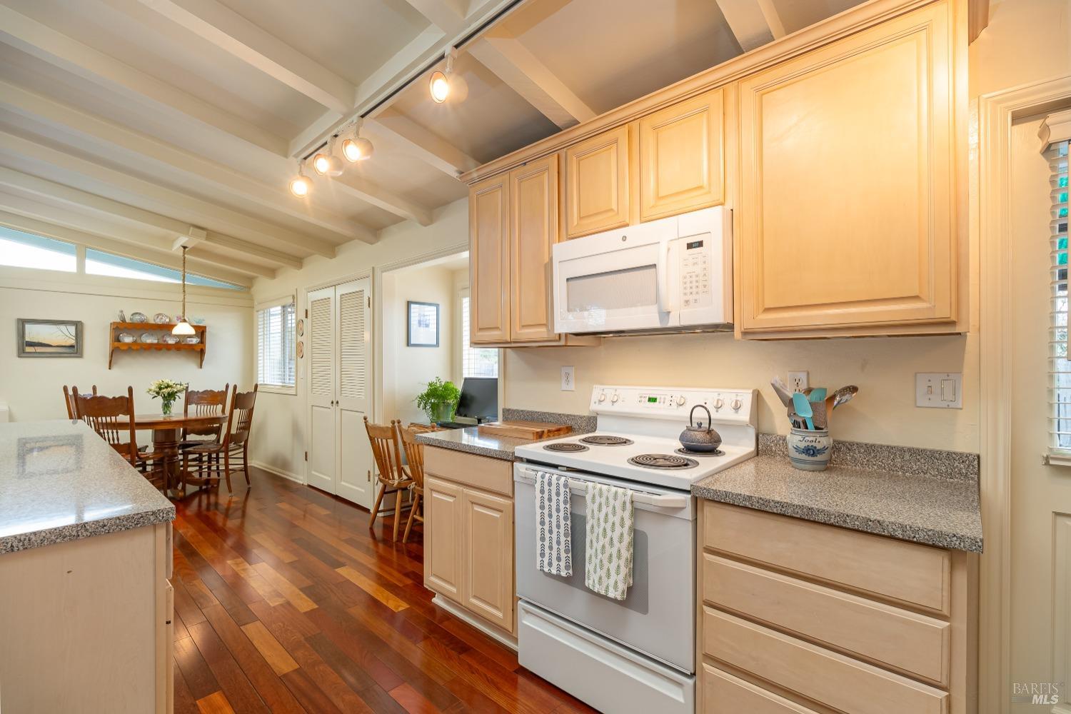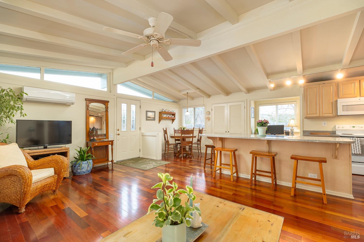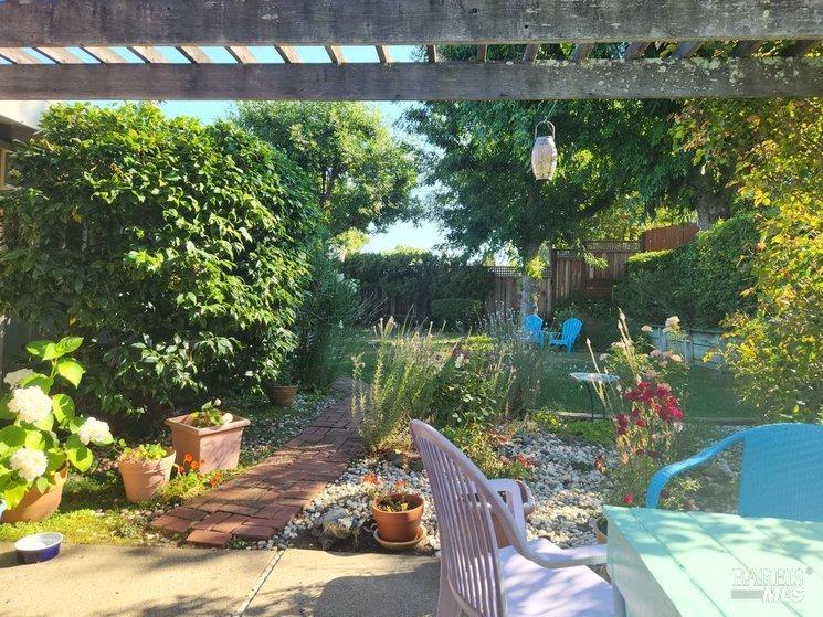 San Ramon Elementary school district, single level charmer. This lovingly cared for property offers a large, open living floor plan. The updated kitchen sporting a large island and well-designed wet bar sit in full view of the living room & dining area with vaulted ceilings throughout. Access the well-maintained rear yard, with patio areas, lawn and ample garden space. The bedrooms and baths sit just down the hall, with one bedroom including a hidden laundry space. Off the living area, easily access the private, and spacious rear yard. Lawns, garden areas and patio space that can also be accessed from the side gate, carport/storage area. This home is beyond cute, very private & within walking distance of downtown Novato and San Ramon Elementary. Do not miss this beautiful, well priced home!