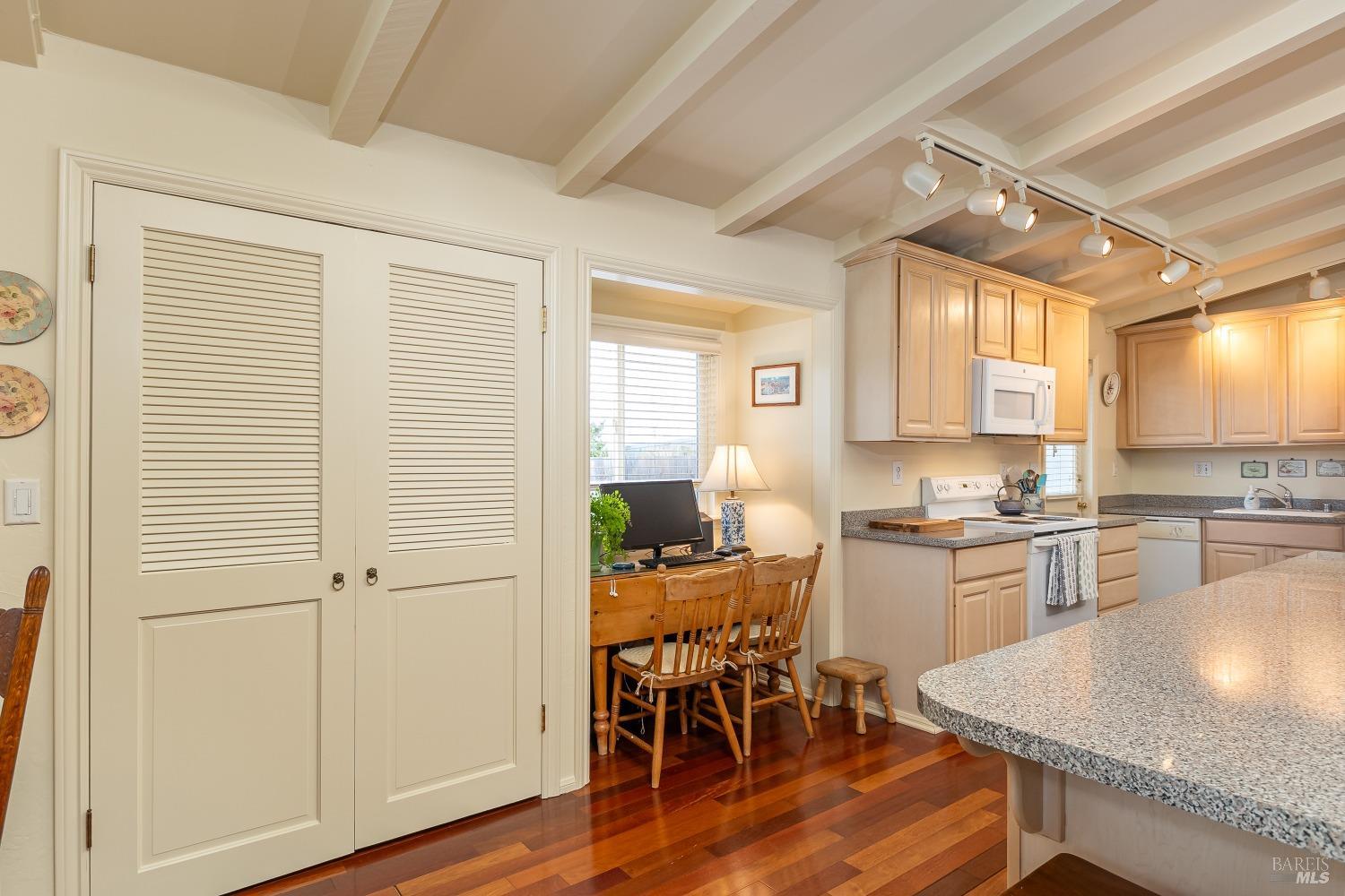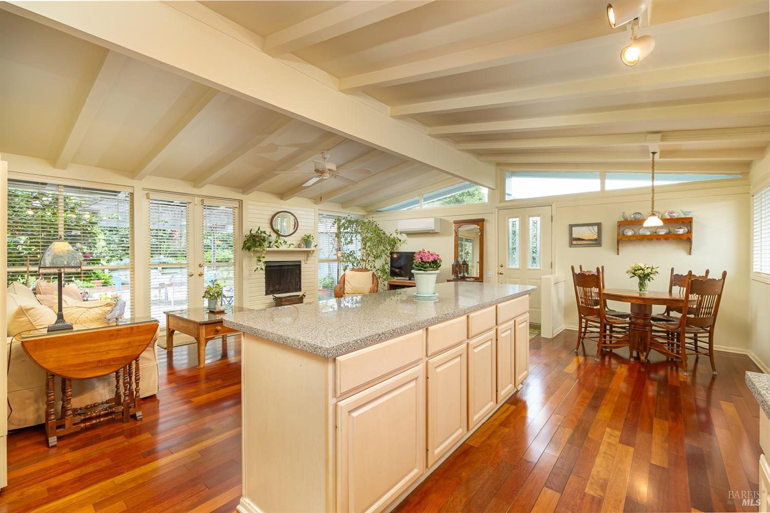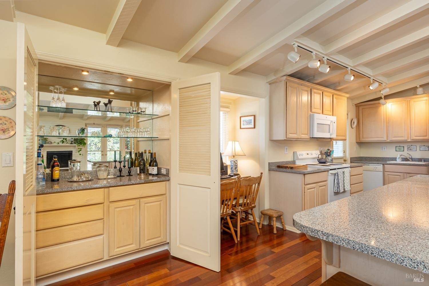 San Ramon Elementary school district, single level charmer. This lovingly cared for property offers a large, open living floor plan. The updated kitchen sporting a large island and well-designed wet bar sit in full view of the living room & dining area with vaulted ceilings throughout. Access the well-maintained rear yard, with patio areas, lawn and ample garden space. The bedrooms and baths sit just down the hall, with one bedroom including a hidden laundry space. Off the living area, easily access the private, and spacious rear yard. Lawns, garden areas and patio space that can also be accessed from the side gate, carport/storage area. This home is beyond cute, very private & within walking distance of downtown Novato and San Ramon Elementary. Do not miss this beautiful, well priced home!
