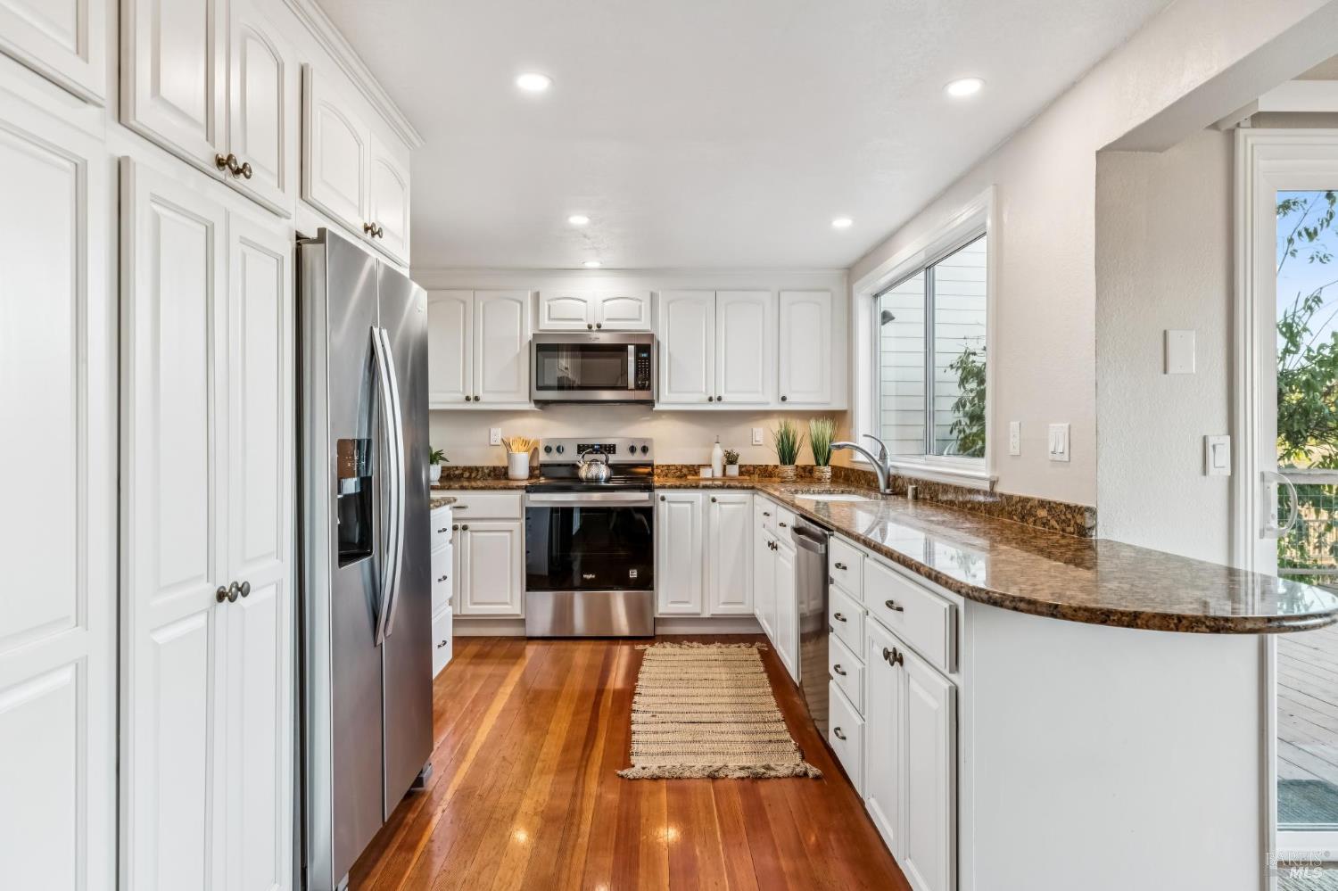 Welcome to your dream home on a tranquil, tree-lined street in the Bahia neighborhood of Novato. This smartly designed four-bedroom, 2.5-bathroom residence offers 2,174 square feet of sophisticated living space, where comfort meets breathtaking northern views. The inviting main level includes a warm living room, formal dining area, and a chef's kitchen flowing into a spacious view family room with an additional dining area. Step out onto the expansive deck for indoor-outdoor living at its finest with unobstructed vistas for miles. Upstairs, the primary suite provides stunning panoramic views and features a remodeled bathroom and walk-in closet. Three additional bedrooms offer ample space, with convenient access to a second full bathroom and laundry closet. A separate two-car garage provides parking and additional storage. Enjoy the community's premier amenities, including a pool, playground, and tennis courts, all within walking distance. Nearby trails offer endless exploration for nature enthusiasts. Experience outstanding indoor and outdoor living at 616 Santana Road - a true Bahia gem.