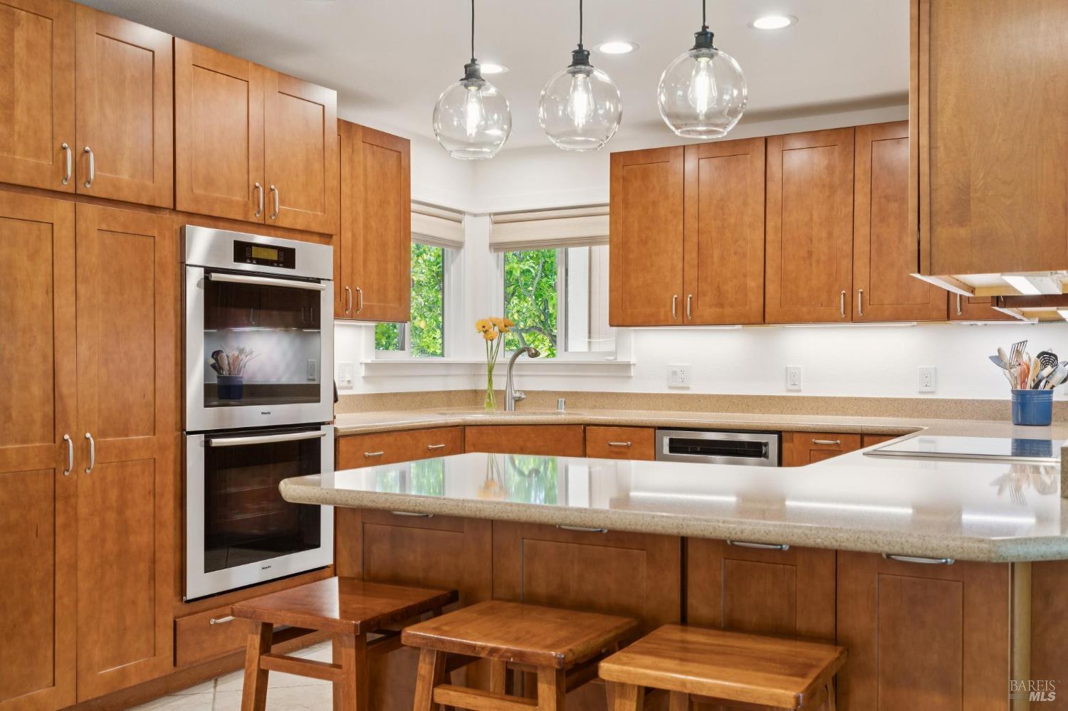 Nestled at the end of a serene, tree-lined cul-de-sac, 724 Alice Street is a true turnkey treasure. This impeccably maintained 3-bedroom, 2-bath home spans 1,350 sq. ft. on nearly a quarter-acre of flat, beautifully landscaped land. From the moment you arrive, it's clear this home is special. Step inside, and you'll be wowed by the stunning kitchencomplete with top-of-the-line Miele & Wolf appliances, sleek countertops, LED recessed lighting, and stylish pendant lights over a generous dining counter. The living spaces are bathed in natural light, with every window framing picturesque views of the lush gardens and yards. Each bedroom is thoughtfully designed, featuring custom Elfa closet systems and elegant designer shades. The outdoor spaces are just as impressive. The front yard blooms with vibrant rose bushes and fruit trees, while the entertainer's backyard boasts a spacious patio, pergola, manicured lawn, and flourishing gardens. Modern comforts like AC, solar panels, dual pane windows and a two-car garage with ample storage add to the home's appeal. Located just a short walk from downtown restaurants and the SMART train station, this home offers the perfect blend of tranquility and convenience. Don't miss your chance to call this gem your own!