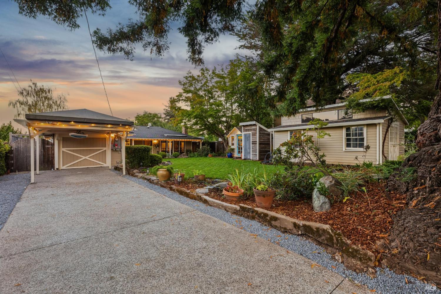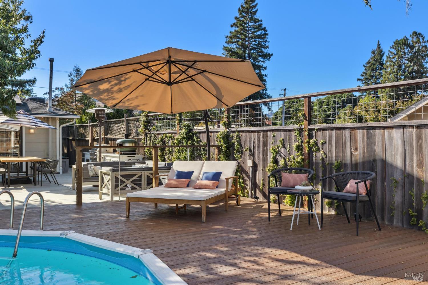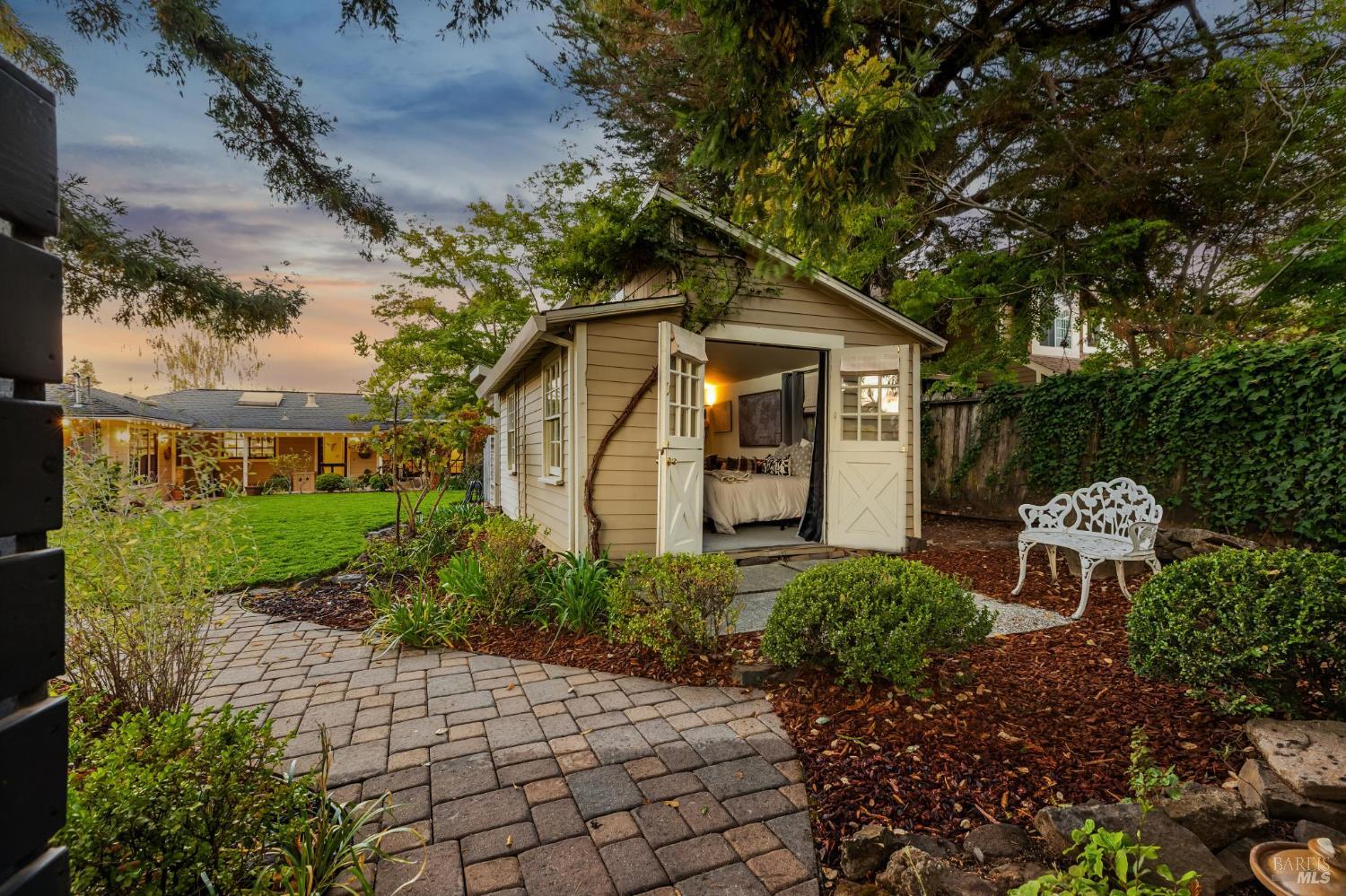 Welcome to your dream retreat at 770 Eucalyptus Avenue, Novato, CA, a charming single-level Pleasant Valley home that beautifully combines history and modern comfort. Built in 1951, this residence is rich in character and thoughtfully designed to meet contemporary needs. As you enter via the private driveway, you'll be greeted by a century-old redwood, setting a picturesque scene. This 1,956 sq ft home features three bedrooms and two bathrooms, offering ample space for relaxation and entertainment. The living room, adorned with built-ins, provides a cozy atmosphere enhanced by a wood-burning stove. The open chef's kitchen includes a skylight, offering natural light and a view of the lovely front yard. The expansive rear yard is a true outdoor paradise, complete with a pool, deck, and private outdoor space perfect for enjoying the Novato climate. An art studio and active/irrigation well complement the amenities, alongside air conditioning, new solar and a parking space for convenience. Enjoy the spacious primary bedroom with French doors leading to the patio, and experience true tranquility in this enchanting property.