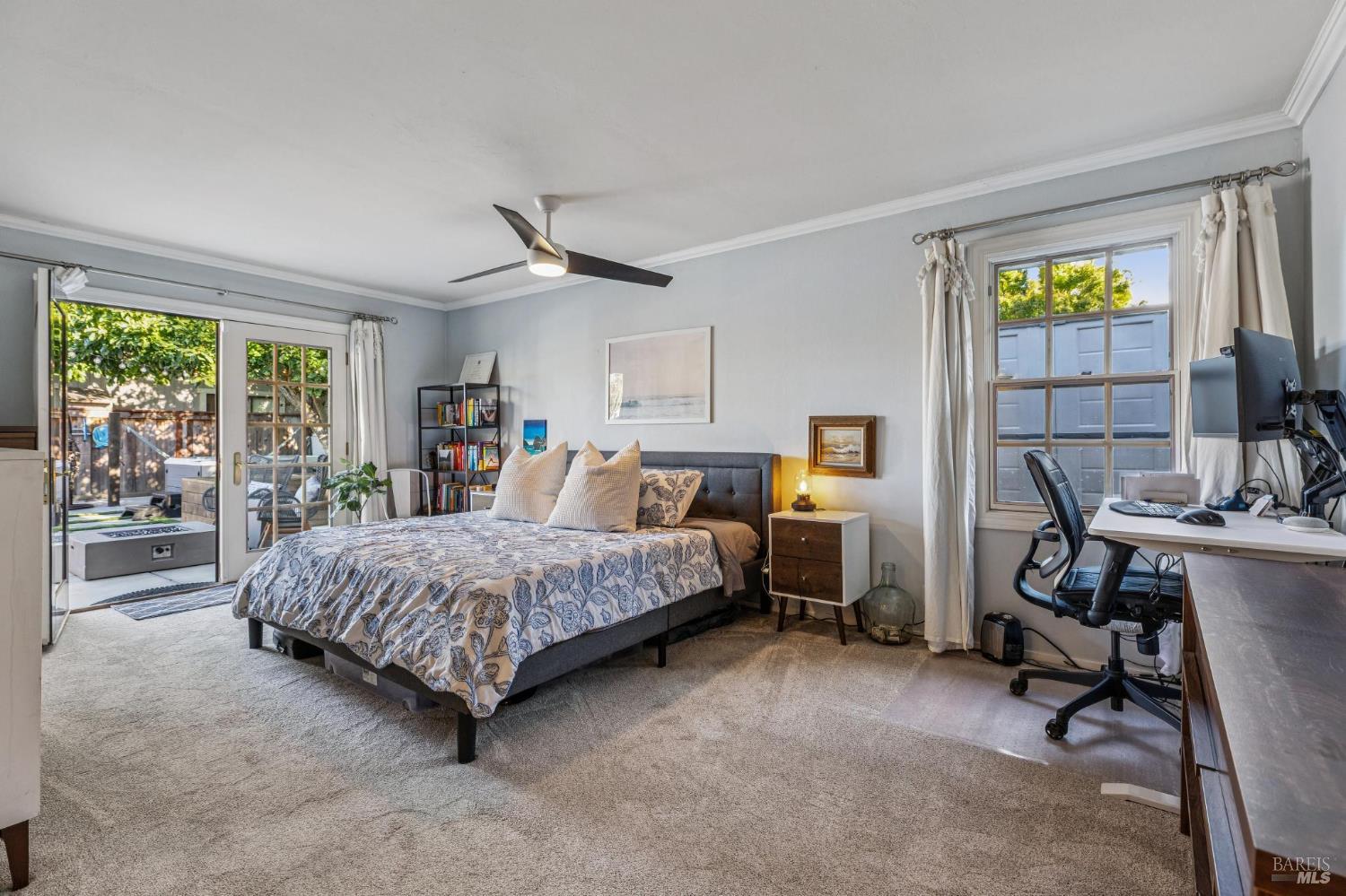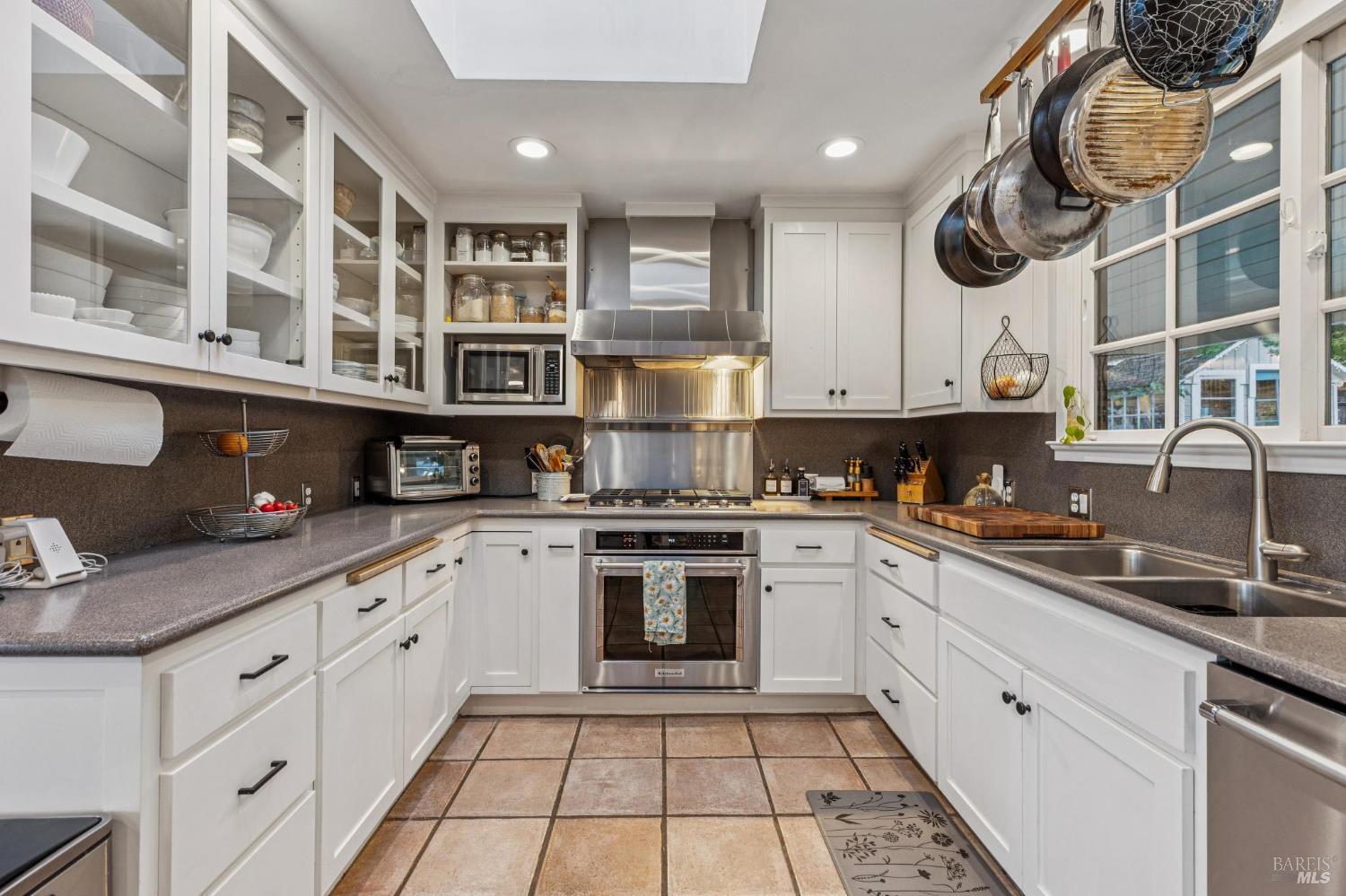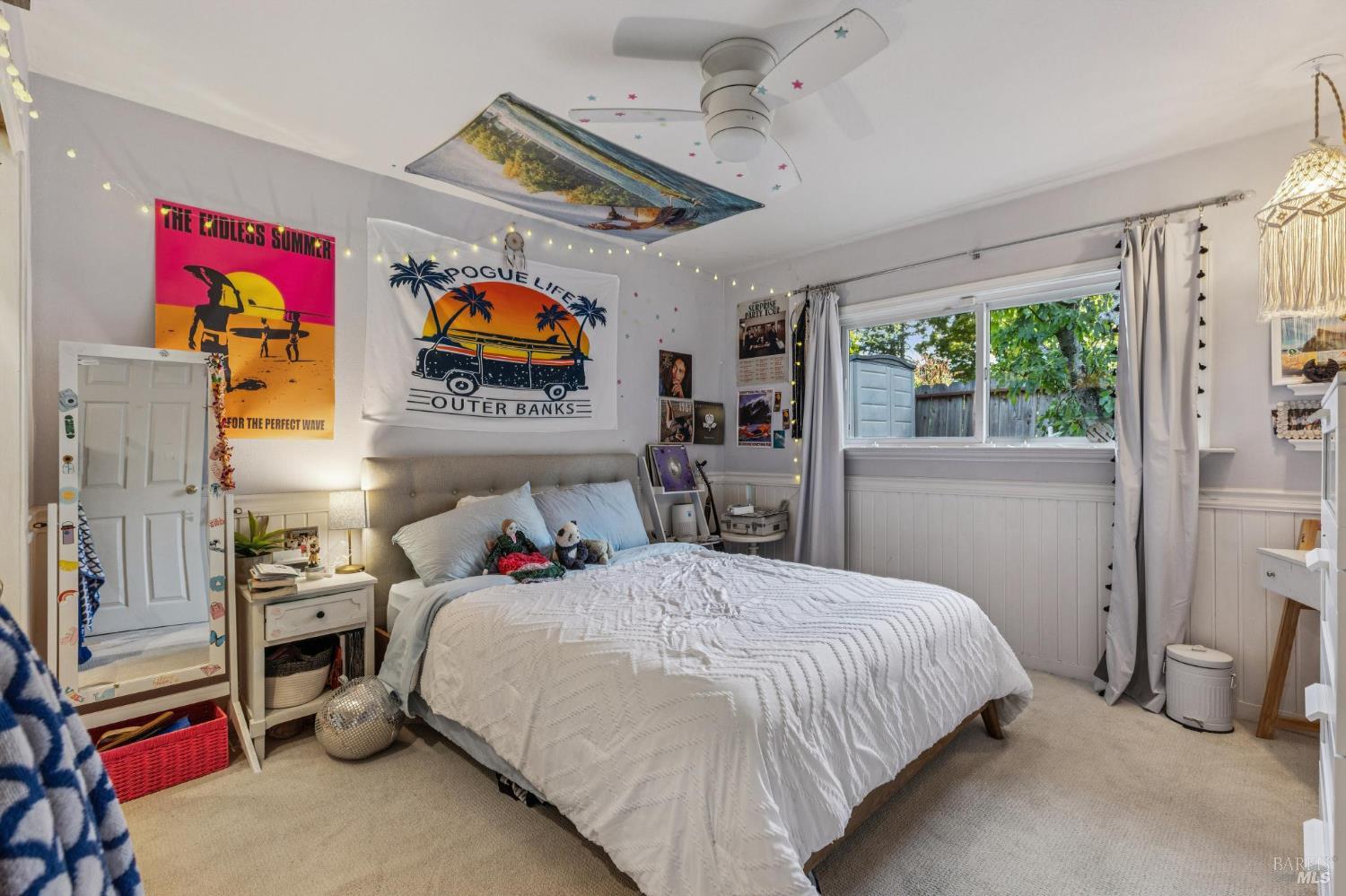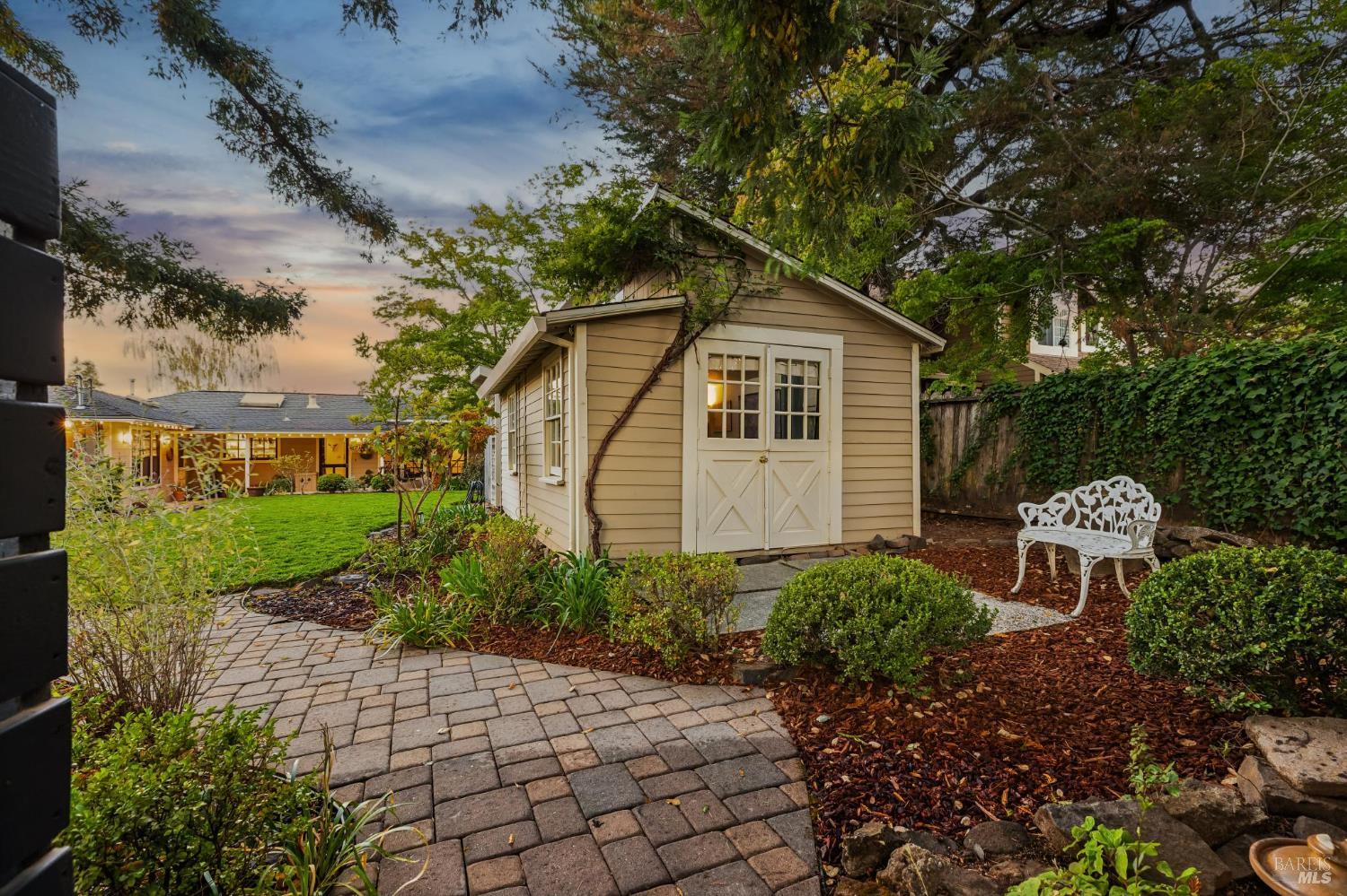 Welcome to your dream retreat at 770 Eucalyptus Avenue, Novato, CA, a charming single-level Pleasant Valley home that beautifully combines history and modern comfort. Built in 1951, this residence is rich in character and thoughtfully designed to meet contemporary needs. As you enter via the private driveway, you'll be greeted by a century-old redwood, setting a picturesque scene. This 1,956 sq ft home features three bedrooms and two bathrooms, offering ample space for relaxation and entertainment. The living room, adorned with built-ins, provides a cozy atmosphere enhanced by a wood-burning stove. The open chef's kitchen includes a skylight, offering natural light and a view of the lovely front yard. The expansive rear yard is a true outdoor paradise, complete with a pool, deck, and private outdoor space perfect for enjoying the Novato climate. An art studio and active/irrigation well complement the amenities, alongside air conditioning, new solar and a parking space for convenience. Enjoy the spacious primary bedroom with French doors leading to the patio, and experience true tranquility in this enchanting property.